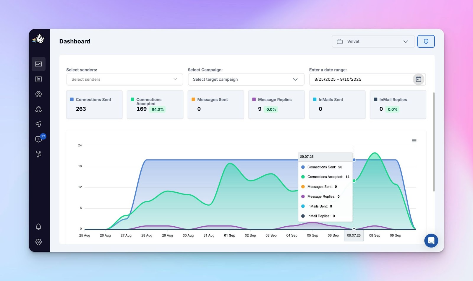 You can connect unlimited LinkedIn accounts for one flat fee, and auto-rotate LinkedIn actions between them within a campaign. This way you can reach way more leads and book more meetings, without losing that much-needed personal touch.