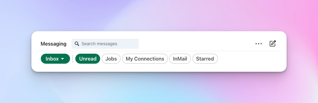 - Message type: Choose between LinkedIn messages, Sales Navigator messages, or Recruiter messages, or see all of them in one place