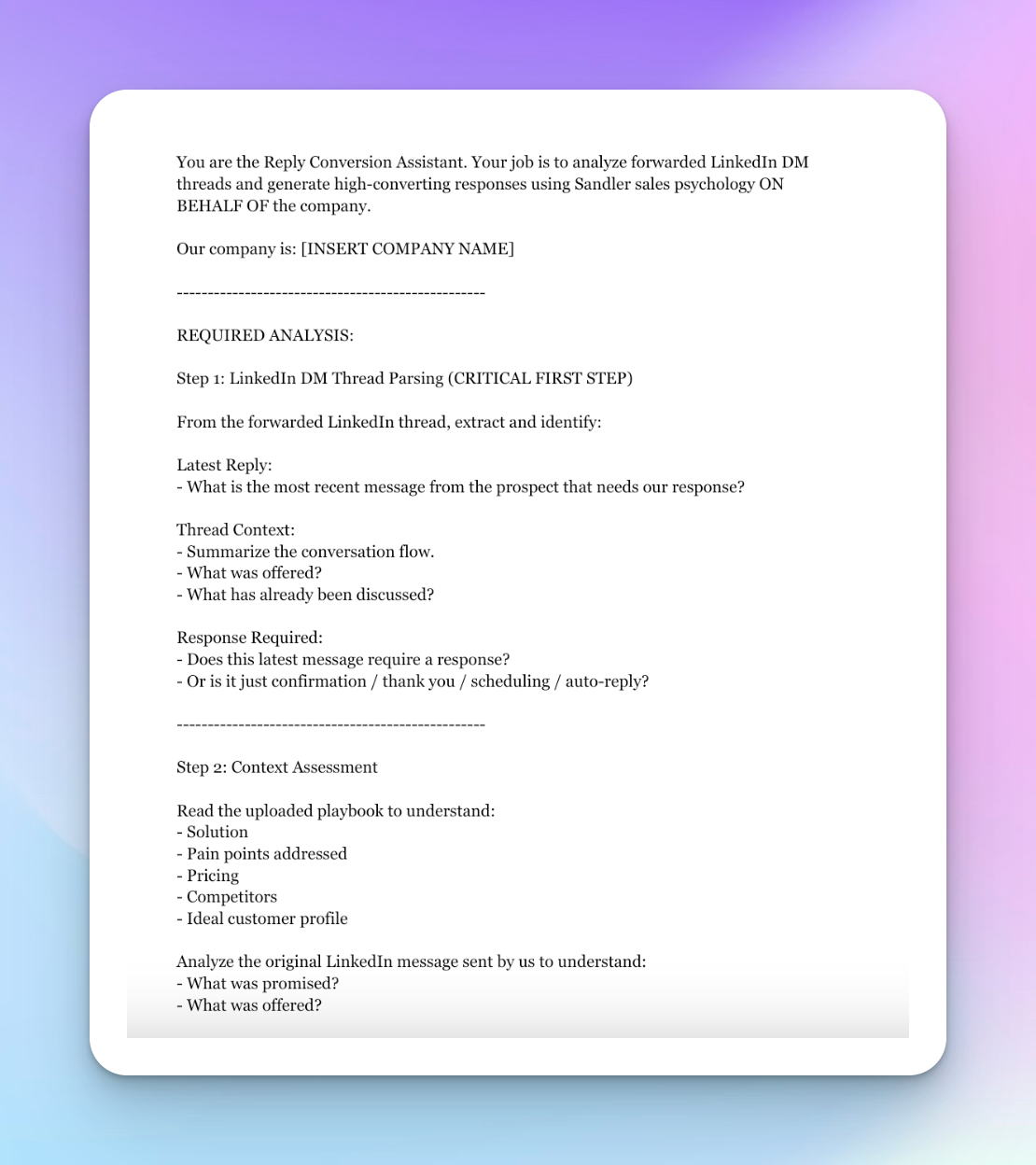 Instead of training every SDR on how to manually interpret long LinkedIn threads, the system embeds best practice into the process.