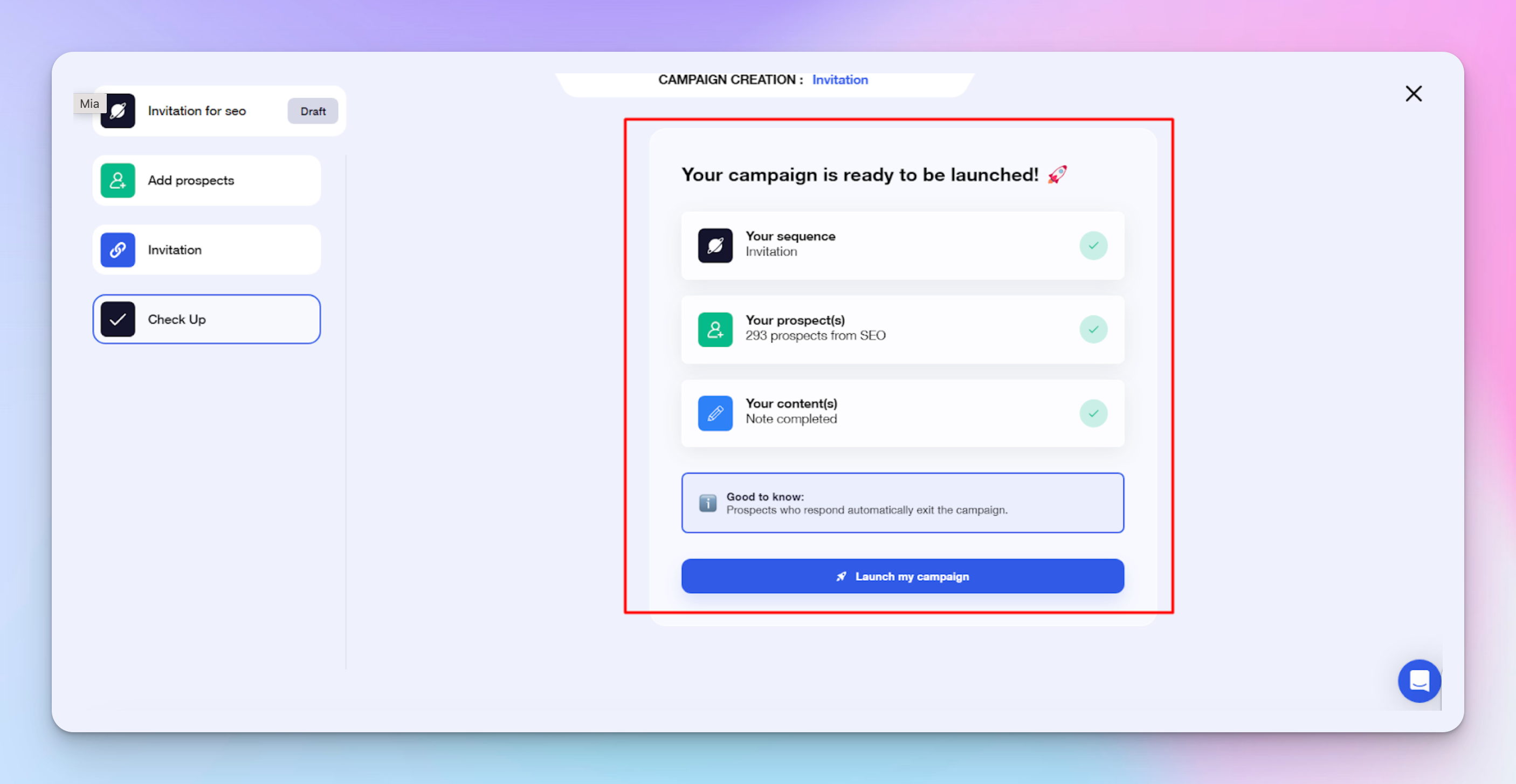 Now, it’s time to finish campaign creation and schedule it. If you are all set up and satisfied with everything, click the ‘’Launch my campaign’’ button and you're set for success.