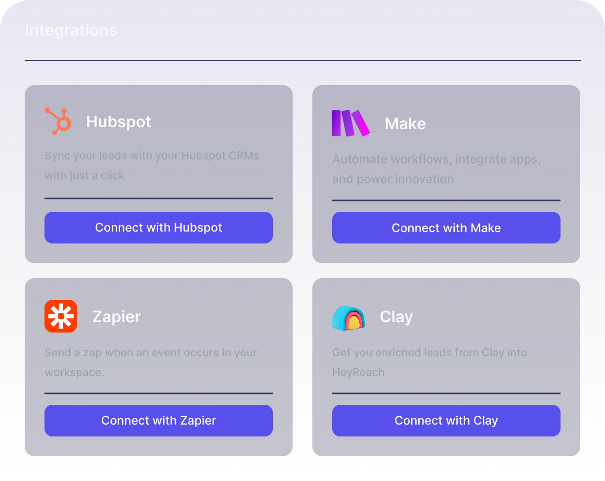 HeyReach MCP seamlessly integrates with platforms like Cursor, Claude, or any other app that supports MCPs.