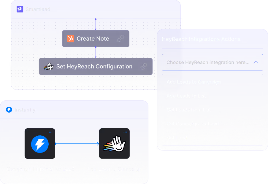 With HeyReach's native integrations to Instantly and Smartlead, automation works like this: